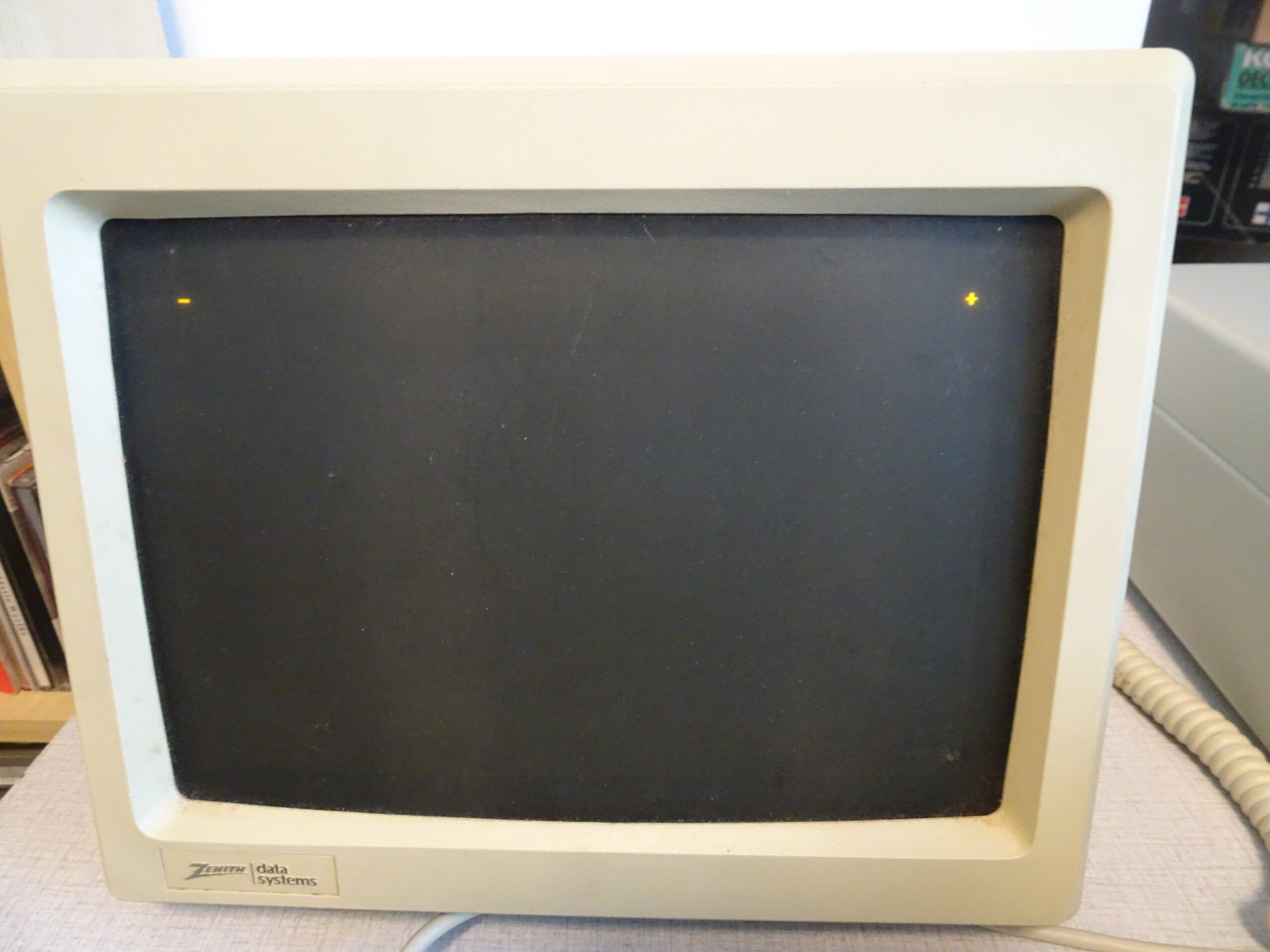 This is what happened when I installed the Hardcard and booted the computer. The blinking cursor on the left is from the XT’s BIOS, while the blinking “+” sign on the right is from the Hardcard’s ROM. A fully functioning Hardcard uses the “+” in the top right corner to show disk activity, because there’s no drive light on a fully internal hard drive (drive activity indicators were apparently considered essential in the ’80s; today, no one cares for them). It’s always there when using the DOS command line, although it can be disabled through a utility program included with the Hardcard.