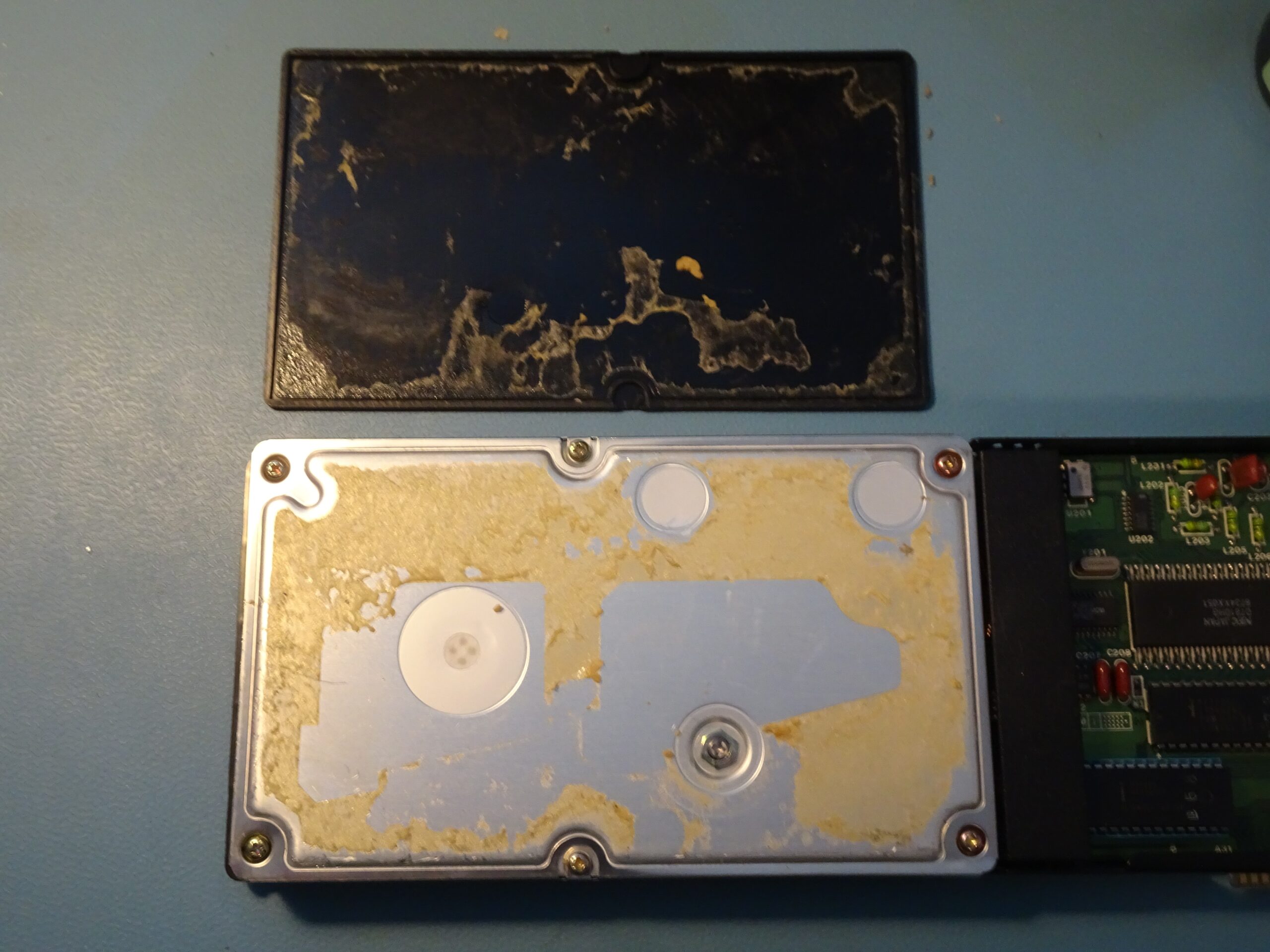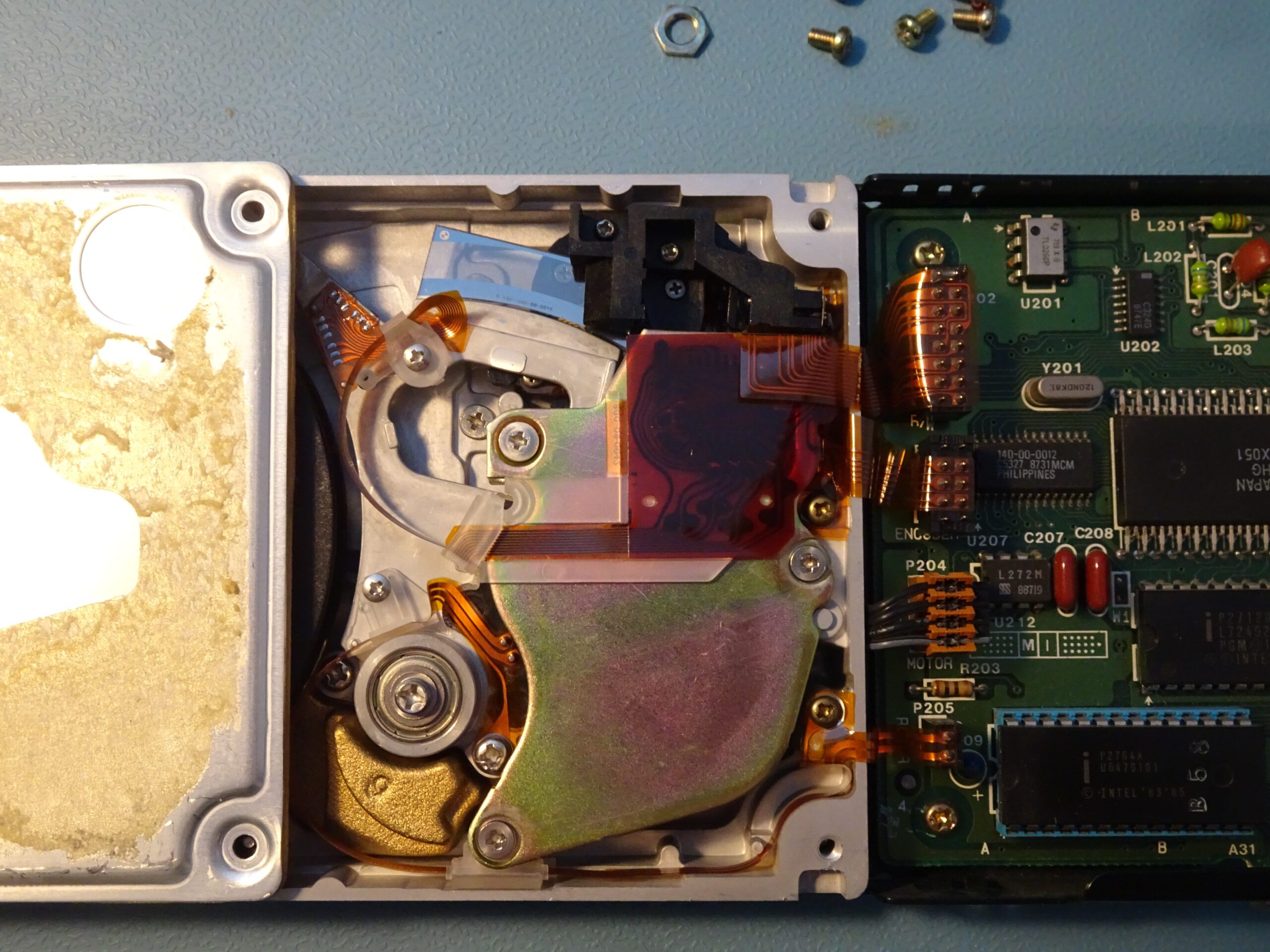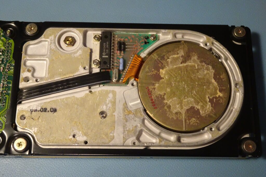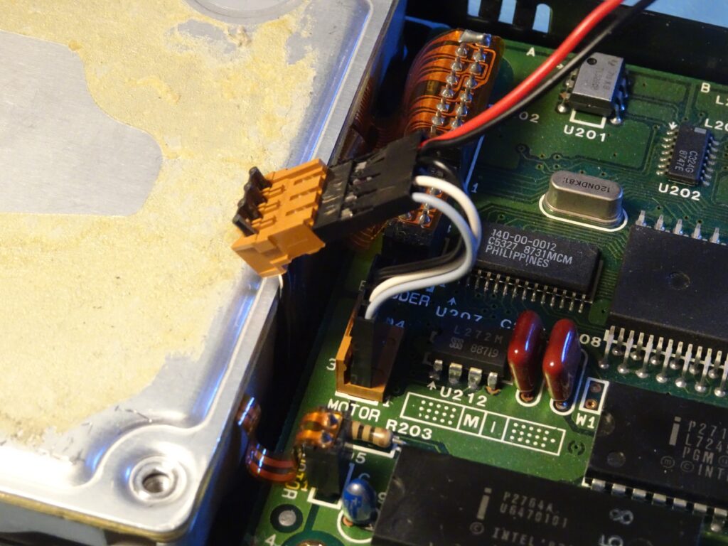 Speaking of spinning up: the drive still wasn’t doing that. At first, I thought this was because it detected the heads being stuck, but I now realised this couldn’t be the case: the heads can only start moving after the disk has spun up, so it should start by spinning up in any case.